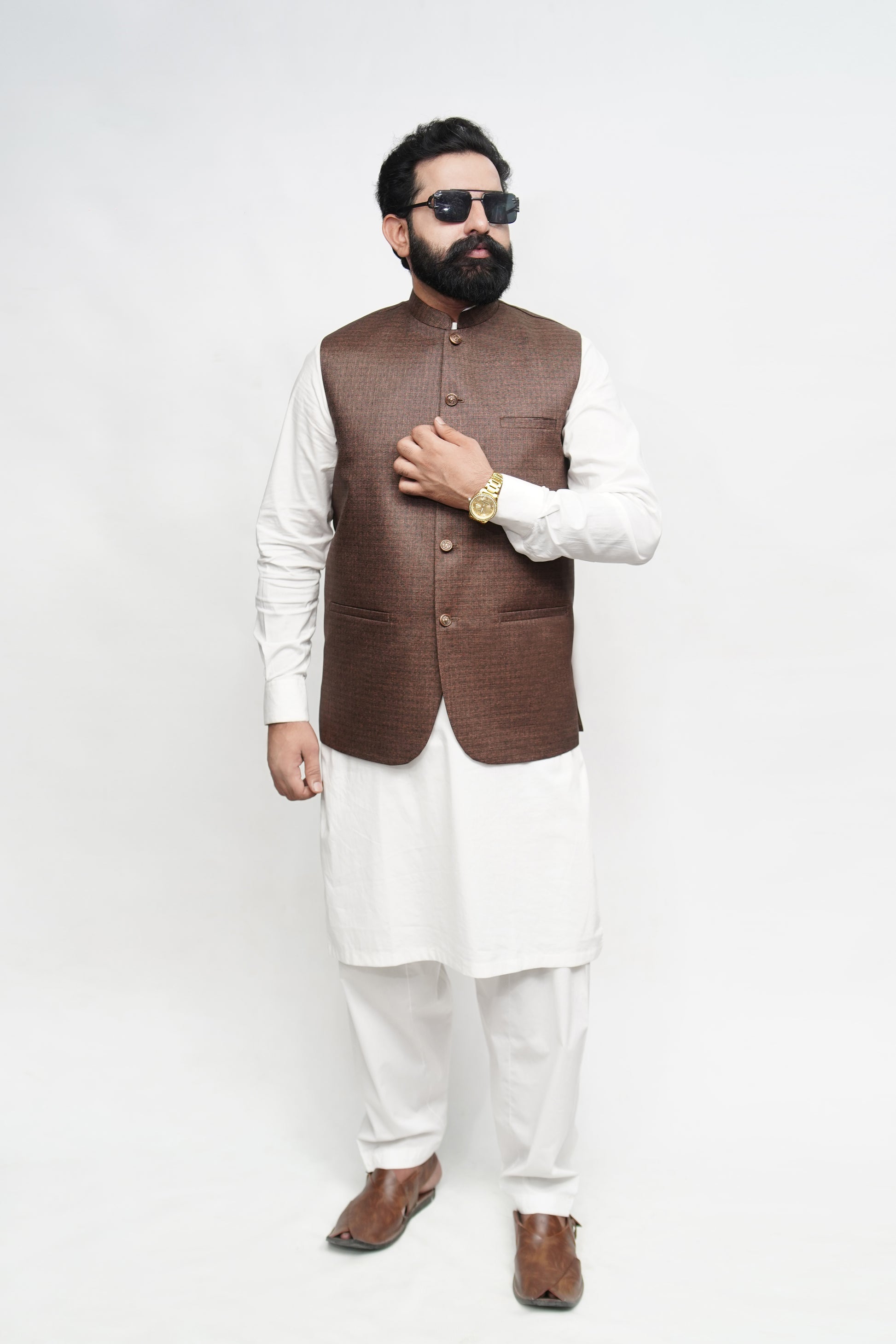 Designed to complement your ethnic wear, this suiting Donior waistcoat is a must-have traditional layering for your formal shalwar suit. The traditional fit, paired with buttons and a welt pocket, makes it versatile enough for semi-formal and casual looks, adding both elegance and utility to your outfit.