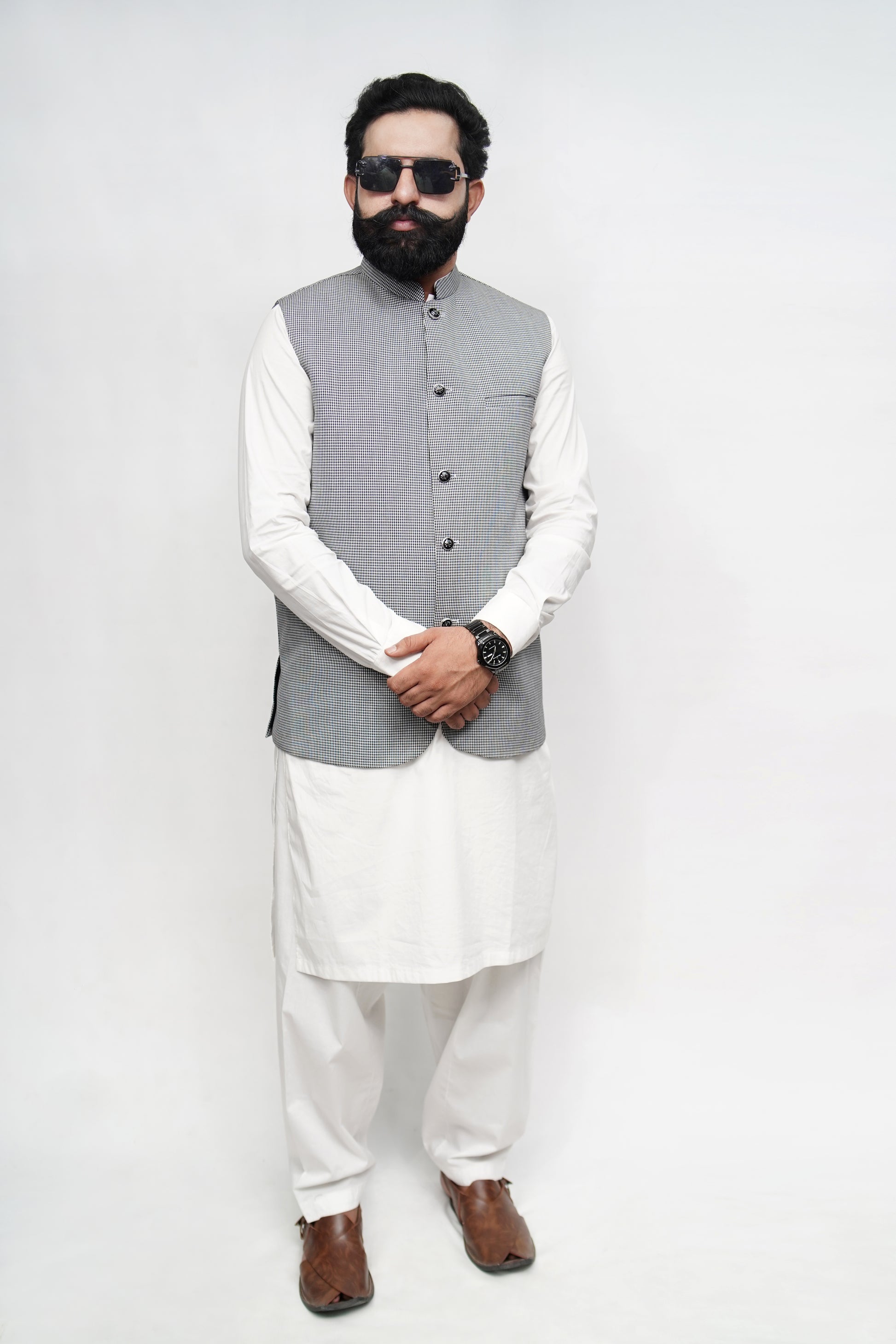 Designed to complement your ethnic wear, this suiting Donior waistcoat is a must-have traditional layering for your formal shalwar suit. The traditional fit, paired with buttons and a welt pocket, makes it versatile enough for semi-formal and casual looks, adding both elegance and utility to your outfit.