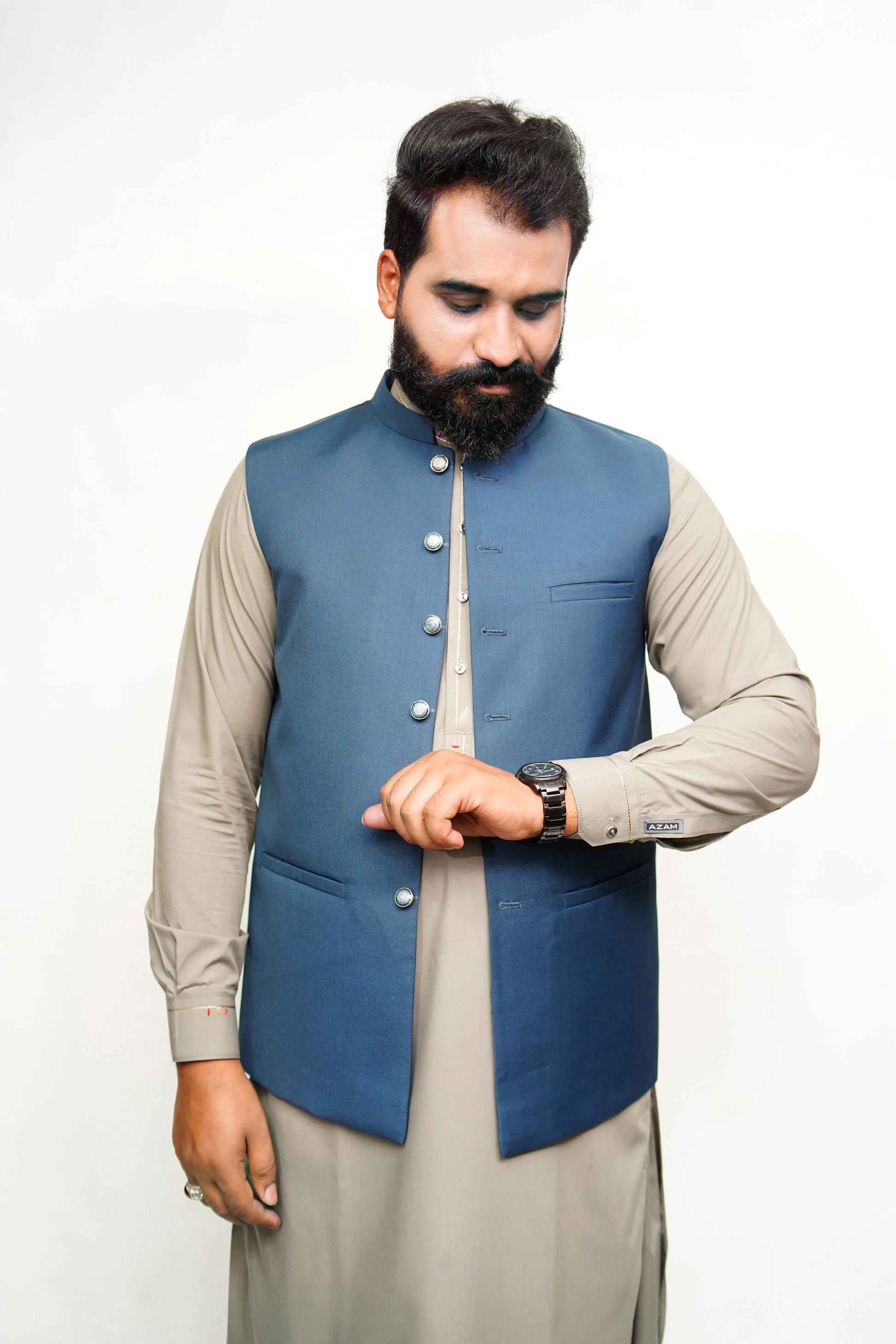 Designed to complement your ethnic wear, this suiting Donior waistcoat is a must-have traditional layering for your formal shalwar suit. The traditional fit, paired with buttons and a welt pocket, makes it versatile enough for semi-formal and casual looks, adding both elegance and utility to your outfit.